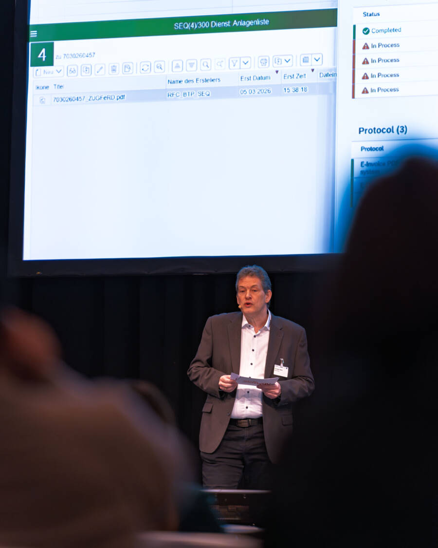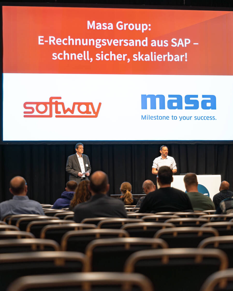 Together with Christian Miltz, director of group IT of the masa goup, Softway’s CEO Frank Engert demonstrated practical know-how on how modern E-Invoicing from SAP works.